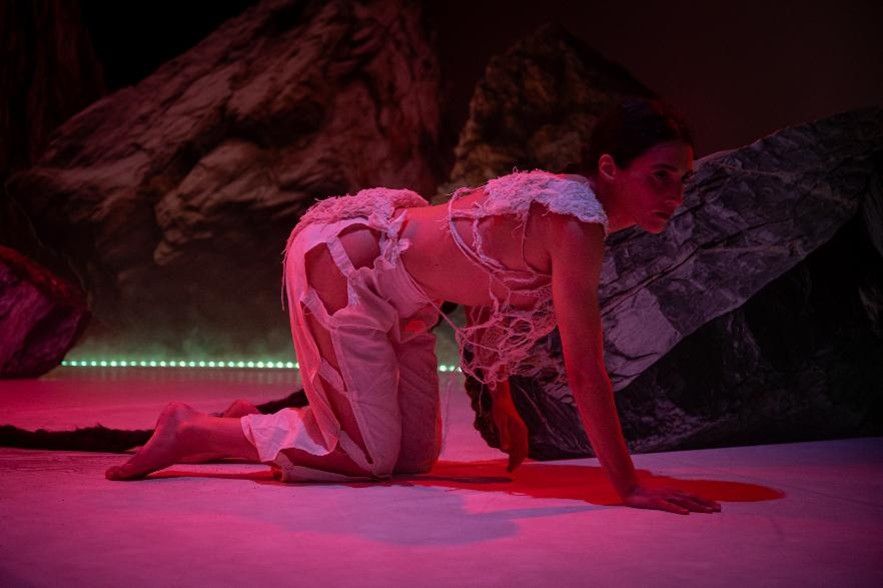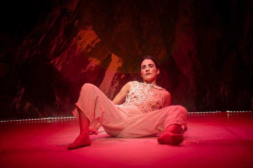 Guided by principles of circularity, a figure traverses a dreamlike, ever-changing landscape. This could be a snippet of Wittig’s text, but is, above all, a kind of conversation – as if I were speaking with the author, speaking with all of them. And, in the pauses of this spectral exchange, beyond listening to them, states emerge, and the dance weaves the threads. Letting the lightness, the unknown, and the underground connect and blur to create an in-between space. Almost as if it were possible to extend an invitation to breathe together.