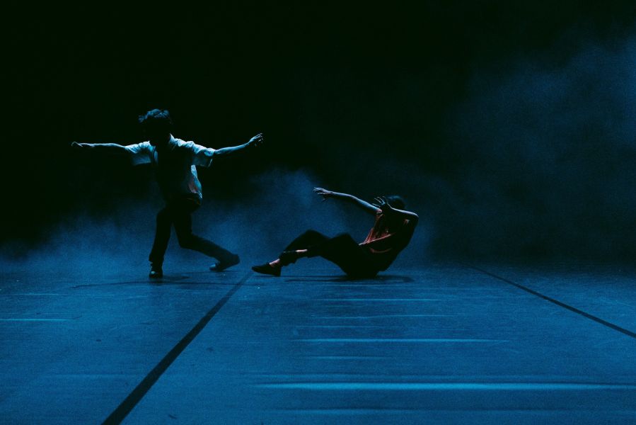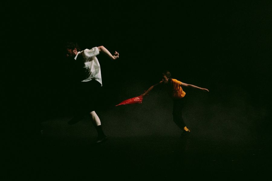 ARTIFICĬU explores themes and symbols that characterize the laws of perception in the human mind. Weaving together the languages of dance, cinema, visual theater, magic, and music, in a mutable collage of dialogues, references, and imaginaries that inhabit the body, Inês and Dylan play with their expectations of time, memory, and beauty in a reality that leaps between the invisible and the tangible, fiction and the “real,” polyrhythm, and unison.