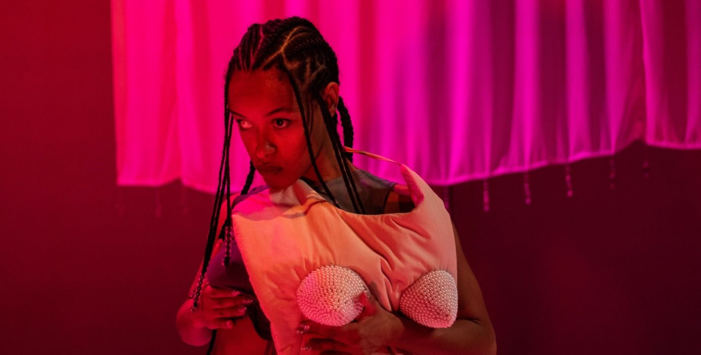 Inés Sybille Vooduness delves into the spiritual and existential narratives submerged beneath a land of high mountains: Ayiti. Is it possible to reterritorialize Haitian voodoo from an inherited diaspora? From selected steps of Angolan Kuduro, the dancer reaches a state in which she can establish a dialogue with Simbi, a family of deities that guard springs and waters. Krik? Krak! An aquatic tale begins in which Erzulie embarks on the ocean, the waters rise, and take the form of the ancestral serpent and the post-memory exercises. Can these gestures allow access to secrets and to the revolutionary temperature, to the invisible? Simbi and its different personifications from the mineral, vegetal, and aquatic realms propel a future that exists without time and is inscribed in a collective act of non-colonial dreams.